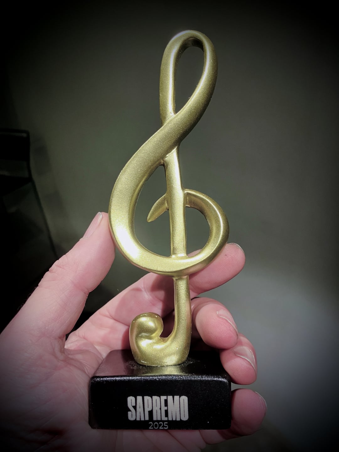 Forgiato nel sacro fuoco della passione musicale (e probabilmente in una fabbrica specializzata), rappresenta l’ambizione, il talento e il coraggio di chi salirà sul palco e conquisterà il titolo di campione assoluto di SAPREMO 2025.
